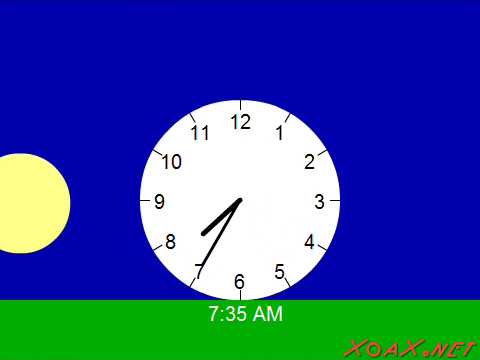 This children's video uses the sun and moon, as well as darkness and daylight, to indicate the time of day. In this way, we associate the time with time of day as it appears outside.