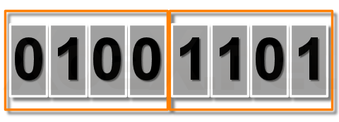 Using eight digits to represent the 256 values in a byte is not economical, so a number system was developed to represent a byte with only two digits. We start by splitting a byte into two sets of four bits or what are called nibbles. Each nibble has 16 different configurations or values as a binary number: