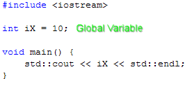 We can declare variables outside of any block. These are called global variables and can be accessed from any code that comes after the declaration.