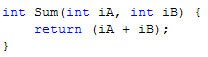 We can have simple functions like the one above, or we can have functions that take in arguments and/or a return value. This function takes two int arguments and returns an int.
