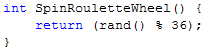 However, unless the modulus divides RAND_MAX + 1 evenly, we will not get a perfectly uniform distribution. In fact, the smaller numbers will be favored slightly. Usually, this would not be a problem, but in a gambling program it definitely would, since the odds are only slightly in favor of the casinos. To fix this, we could write our function to throw out the numbers above the final multiple. In this case, all numbers greater than or equal to (RAND_MAX / 36) * 36 should be discarded.