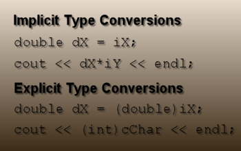 In this C+ tutorial, we cover type conversion. Many of the type conversions that happen in C++ occur without the programmer specifying any desire to convert the data type. These conversions are performed by the compiler and are called implicit type conversions. When an arithmetic expression contains multiple data types, the compiler converts all data types to the one with the greatest range, typically a double. Unfortunately, this may not always be the desired result.