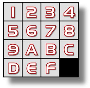 The squares are numbered 1 through 15, and we use hexadecimal for our numbering in order to make the printing in the console window look nicer. With hexadecimal, each square is one character so that the printed board is just a 4x4 set of characters with one left blank: