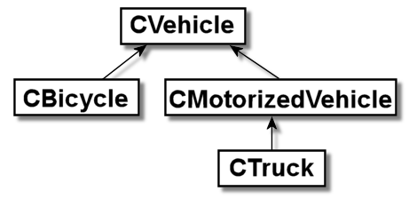 To clarify the situation, CVehicle is the base class, which is inherited directly by CBicycle and CMotorizedVehicle. The class CMotorizedVehicle inherited by the class CTruck. The full diagram looks something like this: