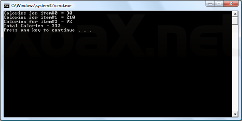 cout << "Calories for item#" << iIndex
