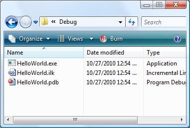 There are two build configurations for C++ projects: Debug and Release. Our procedure for creating an executable will depend on the configuration, which is Debug by default. Since it is the default, we will show how to create an executable using the Debug configuration with the understanding that the Release configuration can be done similarly.