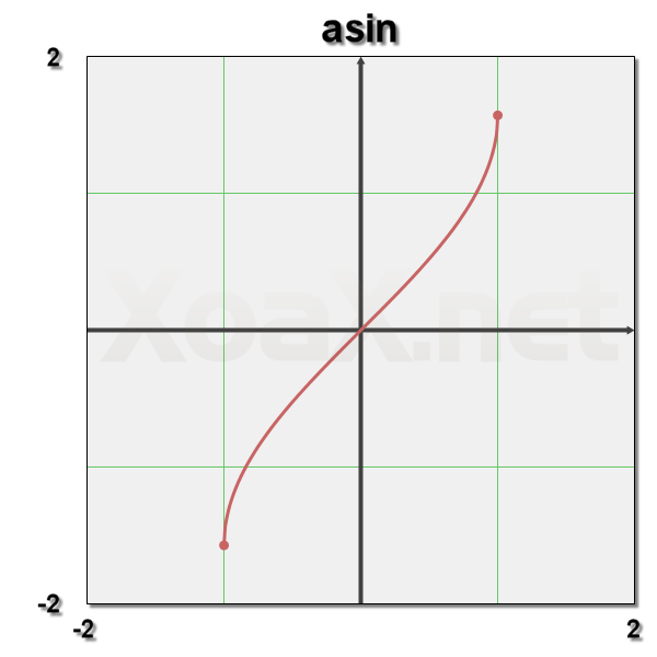 Domain [-1.0, 1.0] Range [-Π/2, Π/2] Periodicity None Symmetry Origin Asymptotes None |