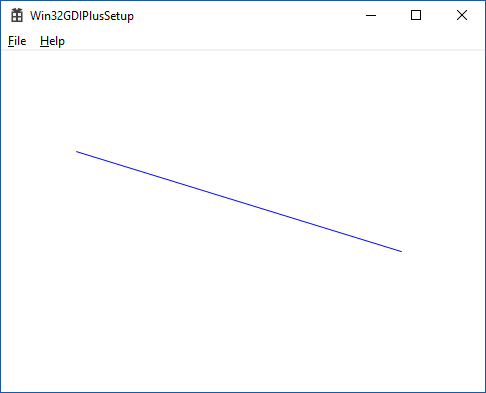 The GDI+ code that we have written uses a default Win32 project and creates a window with a single line in it that looks like this.