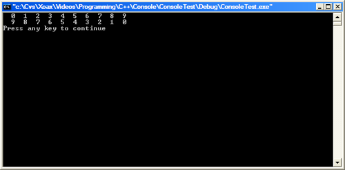// Adding element to a vector and traversals forward and backward #include <iostream> #include <vector> int main() { using namespace std; // Fill the vector with the numbers 0 through 9 vector<int> qIntVector; for (int iIndex = 0; iIndex < 10; ++iIndex) { qIntVector.push_back(iIndex); } // Traverse the vector forward and output the integers vector<int>::iterator qIter; for (qIter = qIntVector.begin(); qIter != qIntVector.end(); ++qIter) { cout << " " << (*qIter); } cout << endl; // Traverse the vector backward and output the integers vector<int>::reverse_iterator qRevIter; for ( qRevIter = qIntVector.rbegin(); qRevIter != qIntVector.rend(); ++qRevIter) { cout << " " << (*qRevIter); } cout << endl; return 0; }
