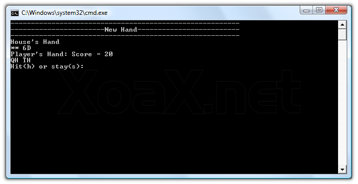 Just as we had in the Tic Tac Toe game tutorial, Blackjack has a main game loop. The main game loop runs once for each hand. Internally, there is a loop to ask the player whether he would like a hit. That is pretty much the overall flow of the game. When programming games, it is important to understand the flow of the game. Often, some of what we consider the simplest games are still extremely difficult to program.